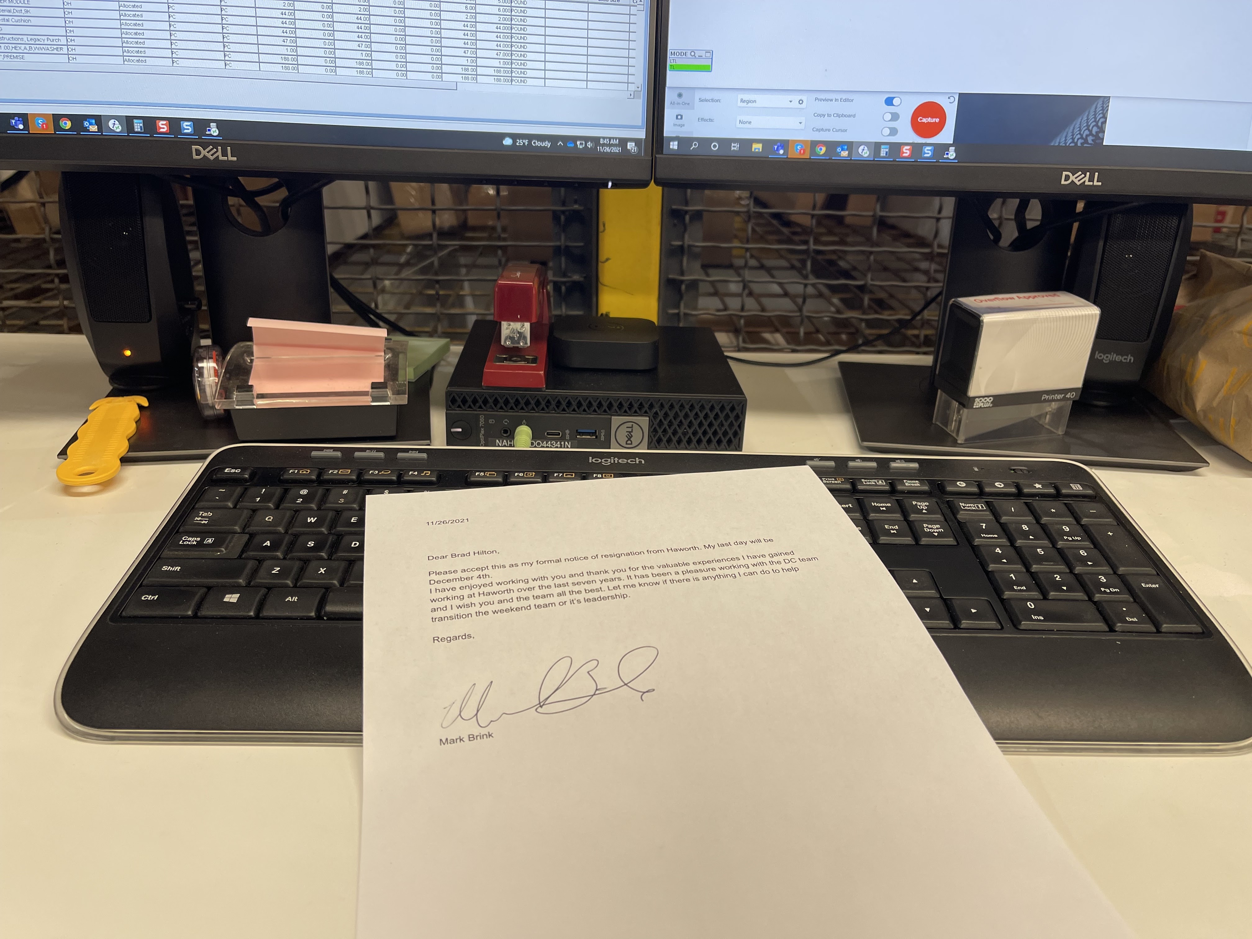 Haworth has played a big part in my family's life for a while now. Years ago when Papa's job of 30+ years started downsizing, he found a job as a supervisor at Haworth (the competitor of where he used to work). He wasn't necessarily wild about having to work 2nd shift, but it was a good company and they treated him well. Eventually as Diana and I started feeling like we needed a change, Papa offered to get me a job there as well. Throwing caution to the wind, we decided to do it! I had been teaching for 14 years, but needed a change, and this was the best offer going. Having no clue what I was in for, I took the plunge and started at the bottom as a hilo driver. After a few months I moved up the chain to loading, and a few months after that I moved up again to be a team lead! I went from the lowest position to leading an entire shift and crew of 22 people in the course of a little over a year! Over the next six years I tried moving up further in their operation, but I kept getting denied. I guess I realized that team lead was as far as I was going to get at Haworth. It's a little disappointing to be told no again and again, so I started looking to see if there were any opportunities elsewhere. With the pandemic and everything that has been going on the past year and a half, I figured even if they did promote me, there might not be much future in an office furniture company when no one is working in offices... After going on a couple interviews (thus the haircut), I had actually gotten a job offer! (that's what the call was while we were at Mom and David's). And that job offer was way too good to pass up! That meant that it was time to say goodbye to Haworth. It has been a great place to work and I will miss many of the guys there, but it's time to move on up! I gave Haworth my two week notice but only had to work one of them because I had saved up enough vacation time to slip out early. It's been great, but its time for me to see what the next chapter of my life looks like!